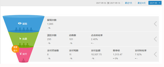 5月份店鋪合作之前,全店支付金額10,507元